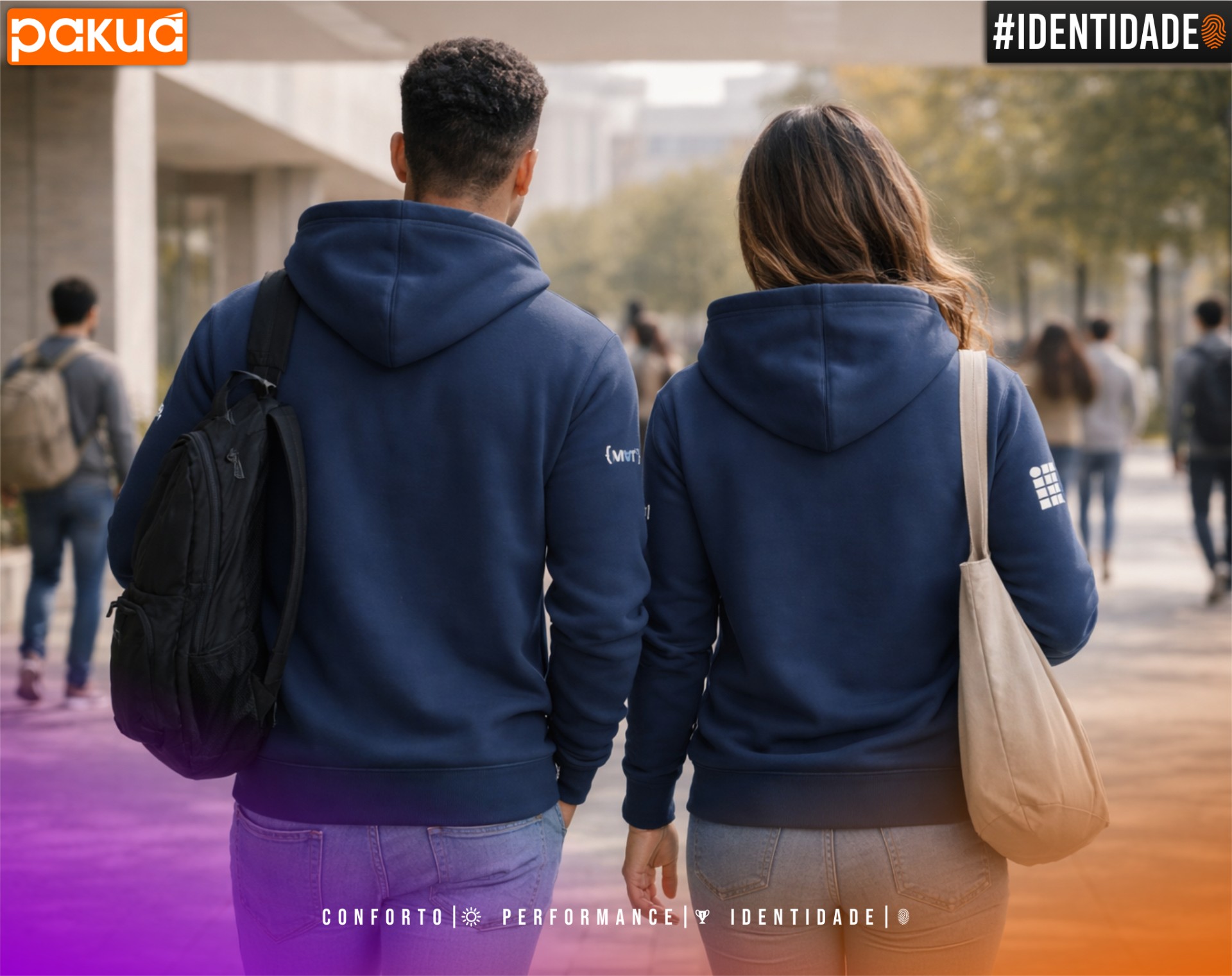 A proposta da Pakuá é desenvolver um moletom universitário personalizado que una conforto e boa apresentação, sem abrir mão de qualidade de confecção. O resultado é uma peça com toque agradável, estrutura equilibrada e excelente aceitação entre os alunos, funcionando tanto como item de uso cotidiano quanto como peça de identidade para Diretórios Acadêmicos, Centros Acadêmicos e turmas universitárias.