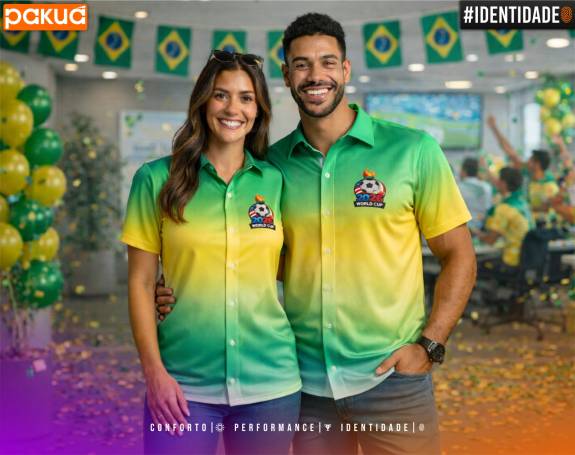 Camisa Resort em Microfibra Stretch 100% Sublimada | Pakuá Copa 2026 para Empresas