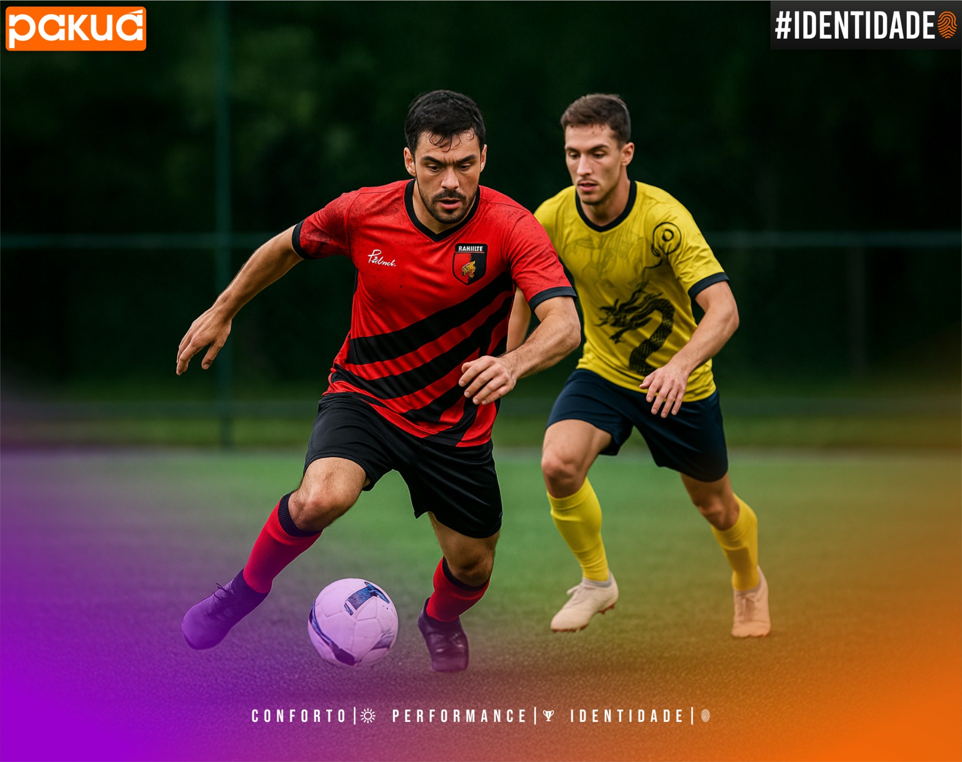 Aqui não é “modelo genérico”. A Pakuá desenvolve o uniforme com bom gosto e personalidade, criando um layout único para tua equipe se destacar — com a cara do grupo, do bairro, da escola, da empresa ou da torcida.