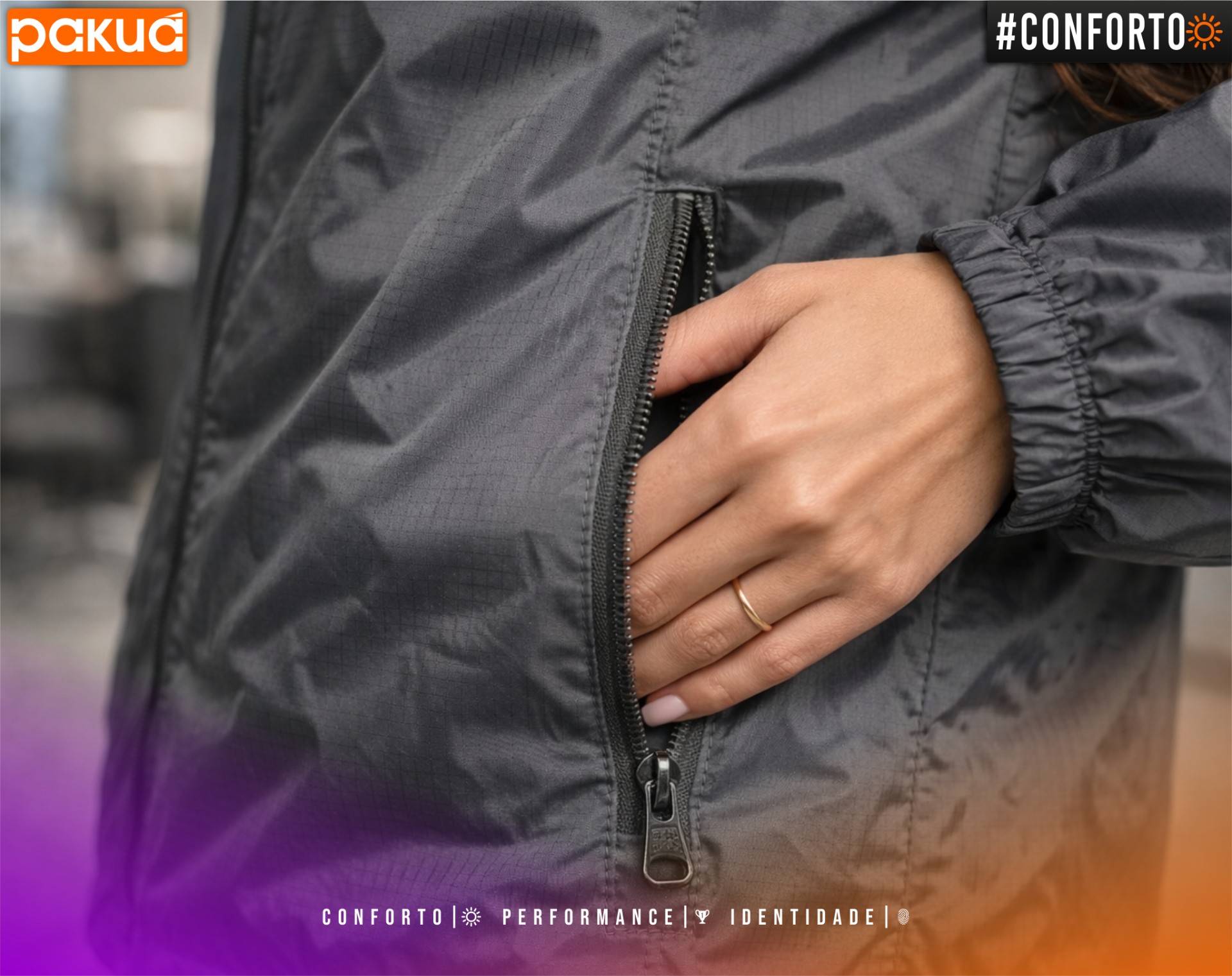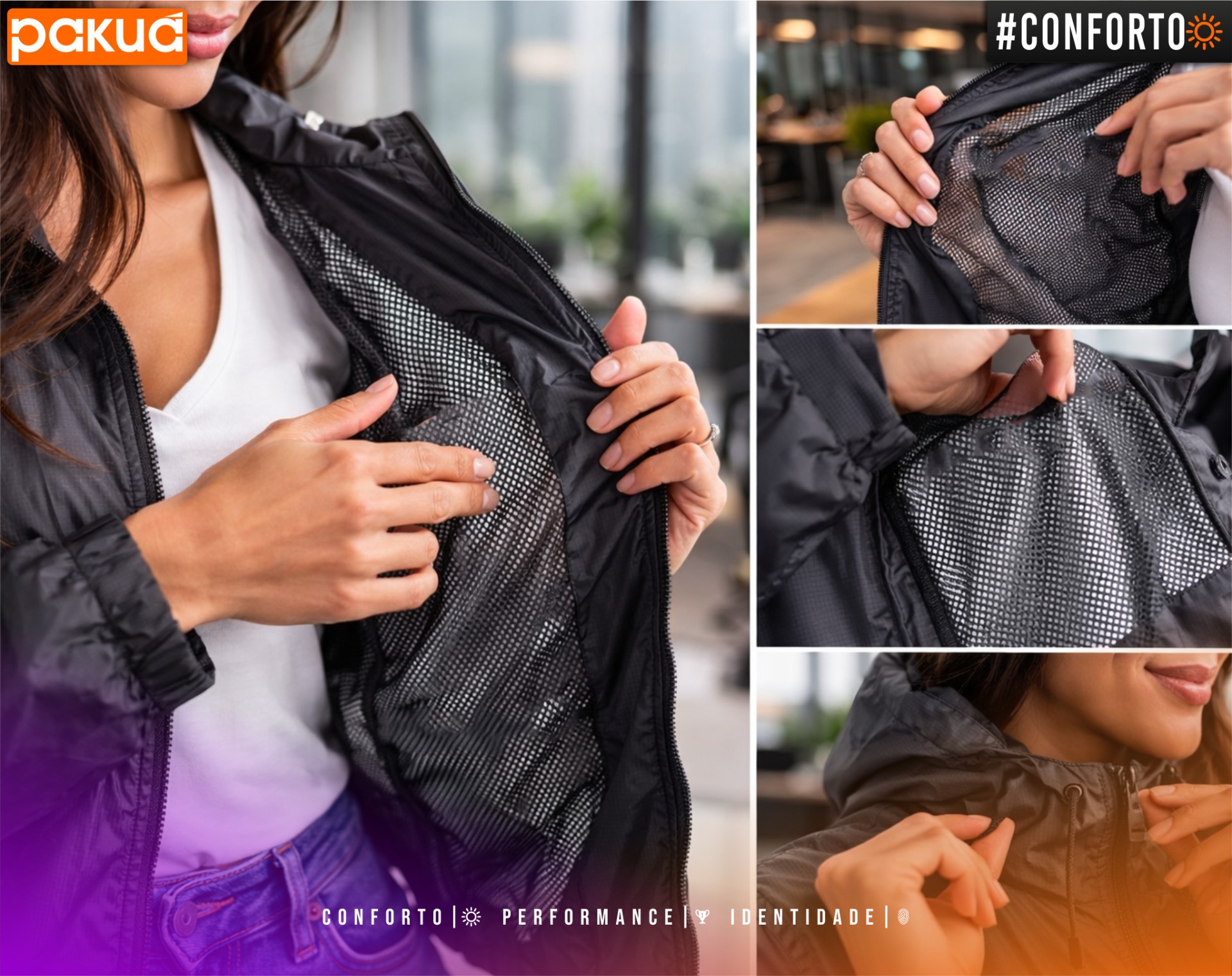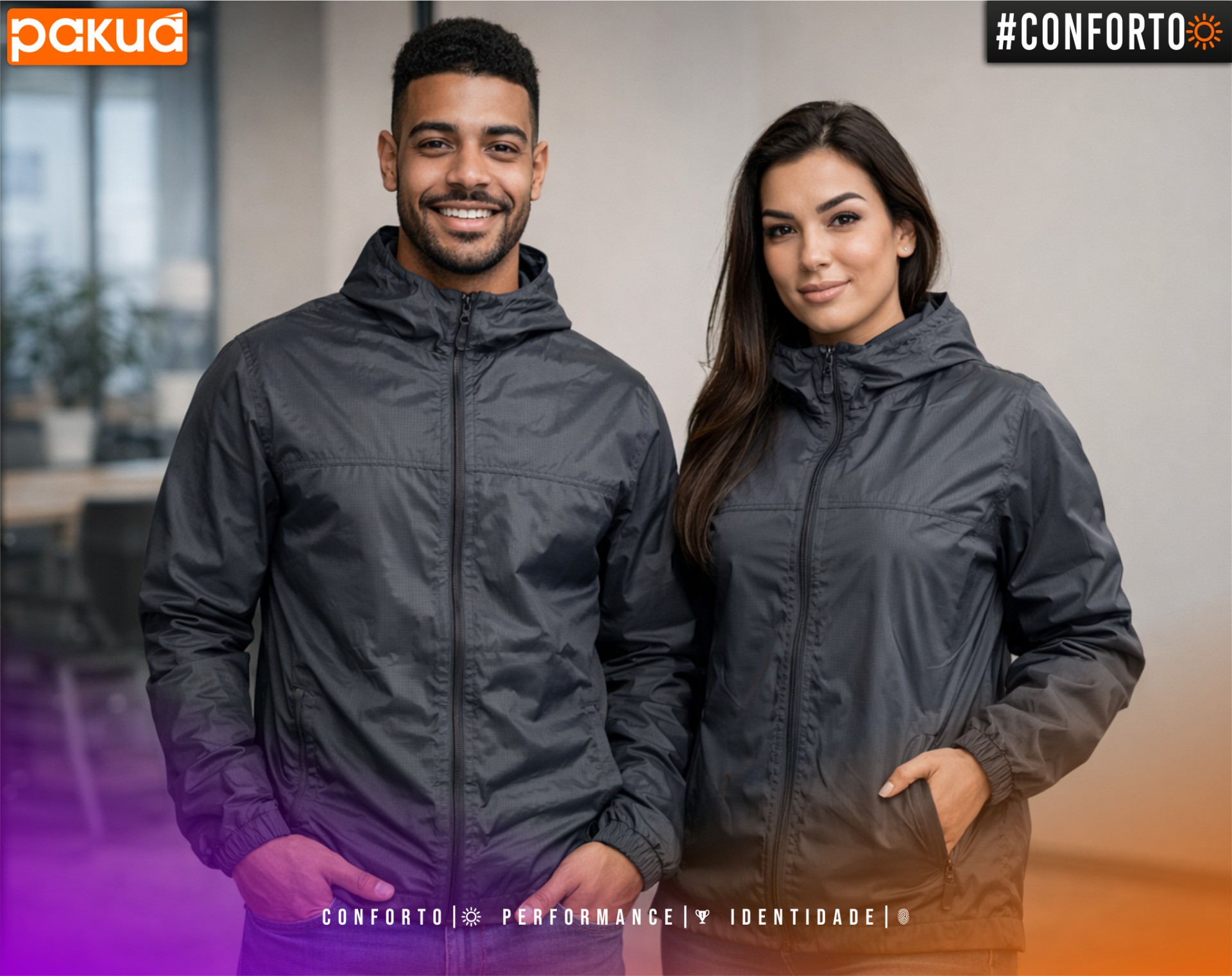 Se você procura um corta-vento personalizado em microfibra premium com forro telado, corte especial, capuz embutido na gola e tecnologia Acquafobic, a Pakuá pode desenvolver a solução ideal para sua empresa, equipe ou evento.