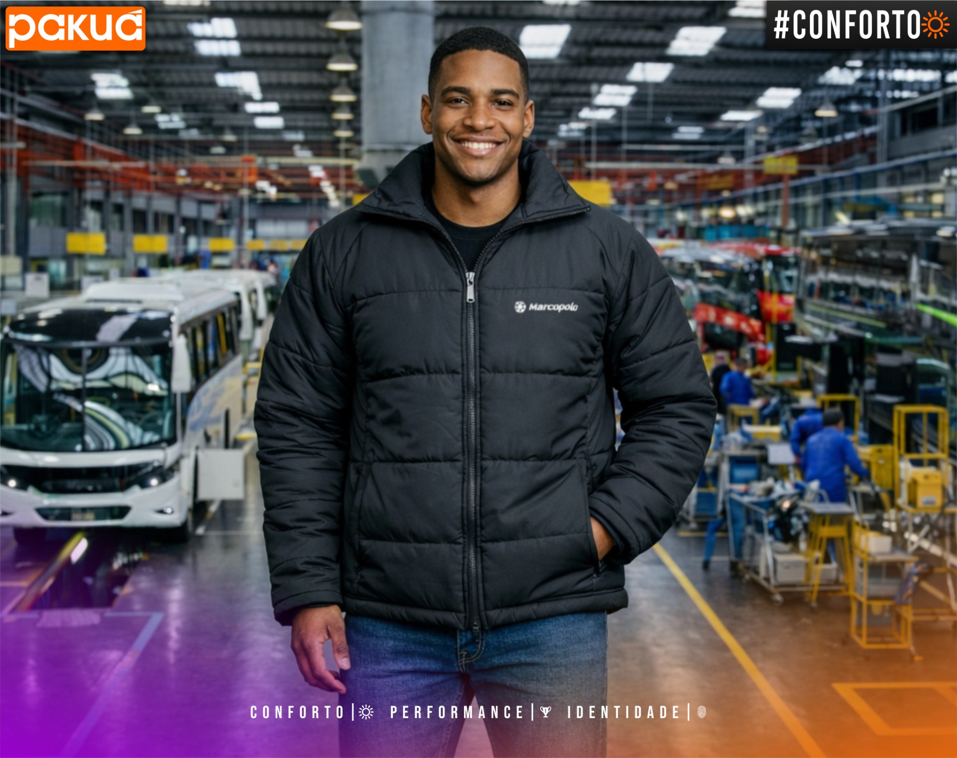 A Pakuá desenvolve peças para quem não para no inverno. A Jaqueta Puffer Patagônia une fibra 150g, punho embutido em Soft e bolso interno para entregar conforto térmico, praticidade e identidade em uma peça só.