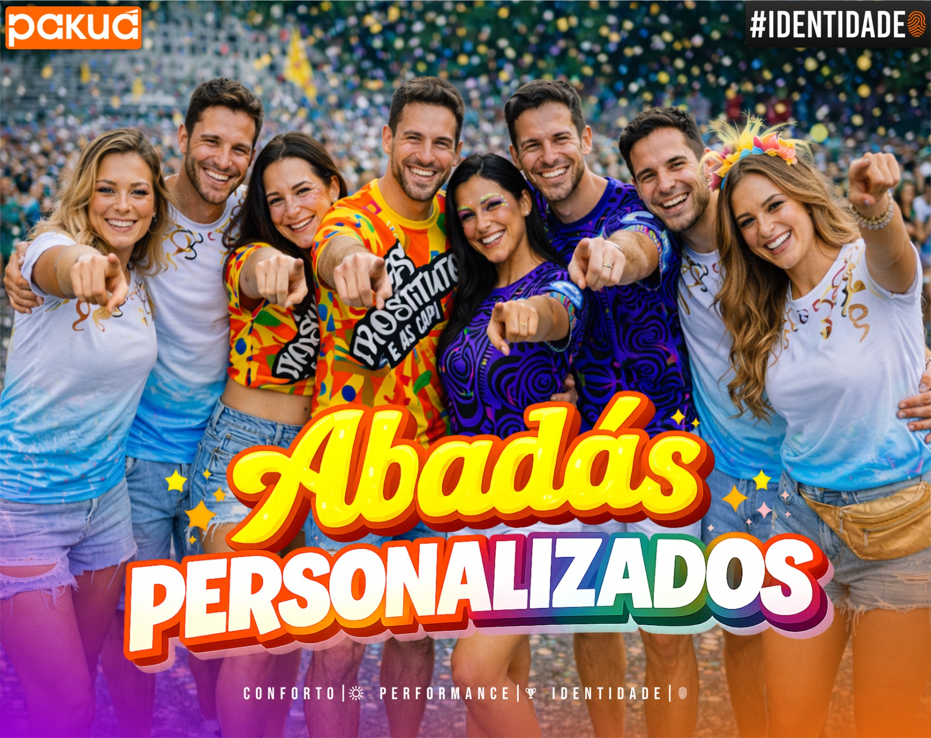 Entre em contato com a Pakuá, solicite seu orçamento de abadá personalizado e transforme seu Carnaval em uma experiência visual marcante, confortável e inesquecível.