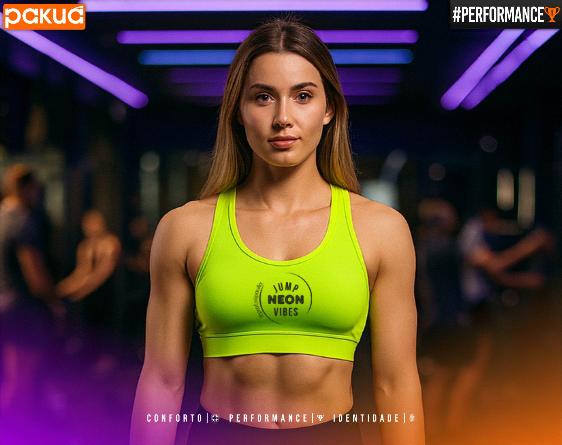 Quer criar um top com a cara da sua academia, estúdio ou equipe? A Pakuá desenvolve a peça com arte exclusiva, cores alinhadas à sua marca e acabamento profissional.